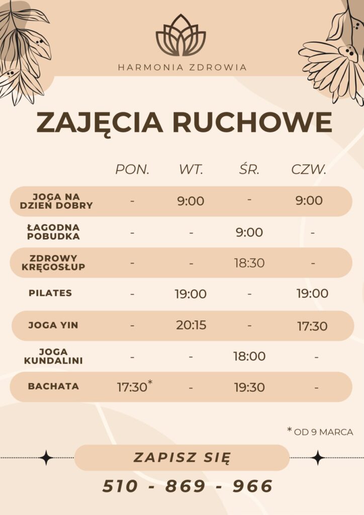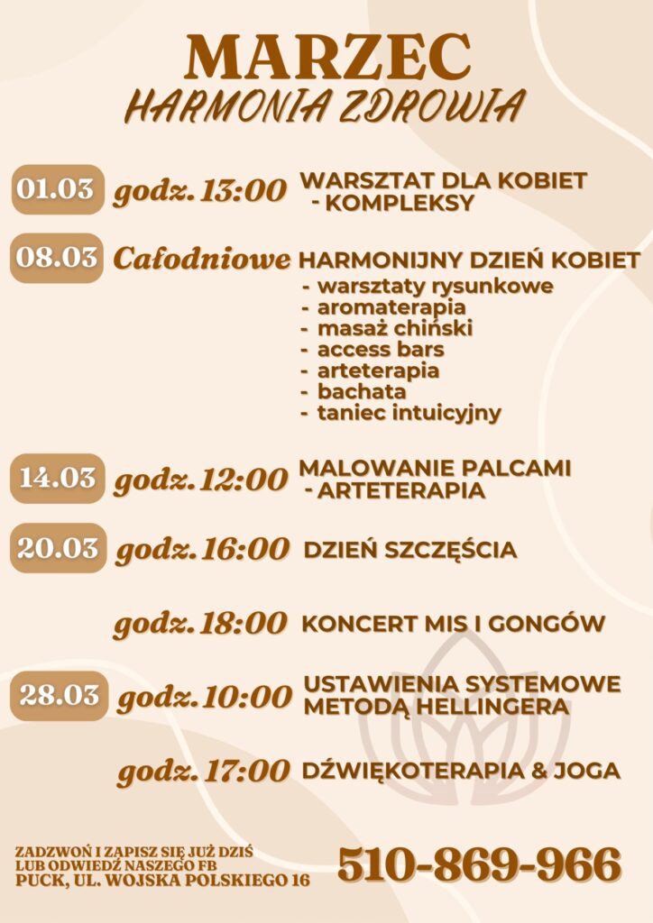 szczegóły i plakaty znajdziesz na naszym Facebooku (kliknij tutaj), na tablicy z harmonogramem przy budynku Harmonii oraz telefonicznie u naszej koordynatorki.